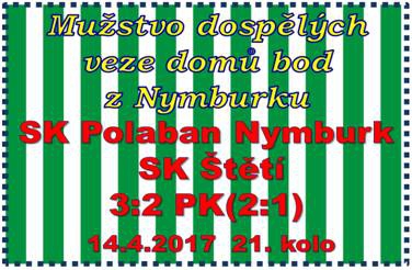 Početná divácká návštěva se přišla podívat na zápas prvního mužstva tabulky, domácího Nymburku s naším týmem. Proti nám stál tým, který 20 zápasů neprohrál a sérii chtěl určitě prodloužit. Utkání přineslo mnoho zajímavých okamžiků, překvapivých situací i emocí, jak na hřišti, tak v hledišti. Už ve 2. Minutě viděl bez jakékoliv tolerance žlutou bravu Ransdorf. Po následném volném přímém kopu neudržel v Gabriel v brance míč pod dozorem a měli jsme velké starosti odklidit míč ven z pokutového území. Čelit z podobného místa dalšímu volnému přímému kopu jsme museli v 8. Minutě. Nakonec jsme nemuseli vůbec zasahovat, protože míč skončil nad brankou. Domácí obranu prověřil Slanička, který se protáhl mezi 2 obránci, ale snaha prostřelit brankáře nevyšla. Uběhlo 15 minut, když byl ve středu hřiště nedovoleně poslán k zemi Slanička. Rozhodčí byl jiného názoru, nechal ve hře pokračovat. Ztratili jsme koncentraci na hru, začali diskutovat a toho z následného protiútoku využil hráč domácích, který se dostal za obranu, kde byl jak poslední pojistka sražen k zemi brankářem. Nemohlo následovat nic jiného než penalta, ze které Nepovím zajistil domácím vedení 1:0. Za další 3 minuty jsme tahali míč ze sítě podruhé. Předcházela tomu další standardní situace, kdy Mencl neodkopl míč, jak bylo potřeba a Svoboda pěknou střelou k tyči upravil na 2:0. Že tento stav naše hráče nezlomil, ale naopak ještě více semkla, zaslouží mužstvo pochvalu. Ve 21. minutě se po centru zleva dostal balón až na zadní tyč, kde číhal Vacek. Balón neposlechl a po střele z 3 metrů skončil nad brankou. Ve 30. minutě si řekl Hrdý před volným přímým kopem proč to nezkusit a ze 45 metrů poslal navštívenku na brankáře Jungra, který byl rád, že míč směřoval jen doprostřed branky. Ve 33. minutě jsme přežili další hromy, blesky před naší brankou. Zpětná přihrávka na nabíhající spoluhráče naštěstí pro nás ale adresáta nenašla. Hodně blízko vstřelení branky jsme byli ve 35. Minutě. Chyby v rozehrávce obránců Belák nevyužil a zívající branku netrefil. Soupeře jsme přitlačili i v dalších minutách. Hrdý si přichystal levačku a střela z 18 metrů orazítkovala tyč. Tlak pokračoval a ještě v téže minutě jsme po ostřelování nymburské branky slavili úspěch. Míč se dostal až k opuštěnému Kuclerovi, který snížil na 1:2. Do 2. dějství jsme vyběhli s odhodláním, že ani na hřišti prvního celku tabulky by jsme nemuseli přijít zkrátka. Potvrdilo se to hned v 51. minutě, kdy byl domácím brankářem nekompromisně poslán k zemi Belák a nemohlo se pískat nic jiného než penalta. Míč si vzal Slanička, brankář jeho střelu ze značky pokutového kopu brankář jen před sebe a z dorážky exekutor penalty srovnal na 2:2. Domácí zabrali a jejich snaha strhnout vedení na svou stranu byla znát. Kopali spoustu rohů a volných přímých kopů. Ani na vteřinu jsme si nemohli oddechnout. Na druhou stranu je však třeba poznamenat, že ale žádnou velkou gólovku si Nymburk nevypracoval. Dalším doprovodným jevem bylo 8 žlutých karet, které vidělo naše mužstvo v průběhu utkání. V 67. Minutě se ocitl v dobrém střeleckém postavení Mencl, ale jeho pokus přehodit brankáře nevyšel a navíc se ještě zranil na hlavě. V 77. minutě zahrávali domácí další z mnoha rohů a bylo nám hodně ouzko, než jsme míč dostali mimo dosah branky. Hned z protiútoku získal gólovou pozici mezi 2 obránci Slanička, ale ten správný moment ke střele promeškal a byl zablokován. V 82. minutě musel proti hodně štiplavé střele nadvakrát zasahovat Gabriel, ale dopadlo to dobře. Přečkali jsme i 3 minutové nastavení, ve kterém musel ještě proti hodně nepříjemné střele zasahovat Gabriel. Vydrželi jsme a po remíze 2:2 mohli slavit zisk bodu. Ten další jsme chtěli získat ještě v penaltovém rozstřelu, který nám bohužel ji potřetí v jarní části nevyšel.