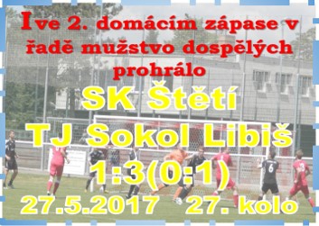 Po minulém kole jsme se propadli na předposlední místo. Ve 2. domácím utkání v řadě nás nyní čekalo mužstvo, které je na tom ještě hůře. I když je v tabulce Libiš poslední, tak na jaře nepodává vůbec špatné výkony a do Štětí s poraženeckou náladou určitě nepřijela. Potvrdila to také hned v úvodu, když pozlobila obranu Štětí rychlou výměnou míče v nebezpečné blízkosti branky. Svědky nepříjemného pádu Vládi Kuclera byli rozzlobení diváci v 6. minutě. Že rozhodčí posoudil zákrok, jako dovolený, hráči nakonec ustáli, ale s poraněným ramenem musel Vláďa bojovat celý zápas, protože na lavičce byl pouze Milan Čámský a ten na tom zdravotně také nebyl stoprocentně. Pohlednou akci předvedlo naše mužstvo v probíhající 16. minutě, která skončila, když si Slanička začal přehazovat balón z levé na pravou nohu. Teprve až v 19. minutě jedno z mužstev vyslalo regulérní střelu směřující mezi 3 tyče. Do statistiky si ji zapsali hosté a Gabriel v brance zase úspěšný zákrok. I když střel moc nebylo, tak se skóre ve 22. minutě měnilo. Obrana Štětí nestačila v čas zaujmout obranné postavění a průnik Šobra znamenal vedení Libiše 1:0. Smířit se s tímto průběhem utkání jsme v plánu neměli a ještě do poločasu jsme toužili aspoň po vyrovnání. O nějakého to procento více jsme měli míč v držení, ale o jasných gólových šancích se hovořit nedá. Kopali jsme roh. Zdravě se naštval i Slavoj Tichý a jeho dělovce z 18 metrů moc nechybělo, aby bylo vyrovnáno. Ono to ale také mohlo být ve 40. minutě už o 2 branky. Po střele hostů a úspěšném zákroku Gabriela byl na hřišti slyšet kámen, který spadnul ze srdce většině diváků. Hosté nelenili a ještě minutu před odchodem do kabin zakončili rohový kop hlavičkou těsně vedle. Úvodní minuty druhé části signalizovali snahu Štětí vyrovnat. Slanička trefuje dobře postaveného obránce a Vacek zase ochrannou síť vedlejšího hřiště. Spoluhráče hledal na brankové čáře soupeře Tichý, ale všichni nabíhající vyšli naprázdno. Když pak v 59. minutě správný moment ke střele v dobré pozici propásl i Slanička, tak se pomalu začínalo vypisovat výběrové řízení na střelce domácího týmu. To ale nemusí u našeho protivníka. Zdeněk Šenkeřík, který má zkušenosti i z ligy mistrů v době jeho účinkování ve Slavii, prošel obranou jak nůž máslem, byl faulován a ještě stačil přihrát Šobrovi, pro něhož posunout balón na 2:0 do opuštěné svatyně bylo snadnou záležitostí. Branka byla doprovázena velkými emocemi, jak na hřišti, tak i v hledišti. Reklamovalo se postavení mimo hru. Nechť to rozsoudí video, pokud to bude možné. 68. minuta a hlasatel oznamuje branku. Jejím autorem na 1:2 byl po přesném centru od Kuclera hlavou Hrdý. Dlouhý čas ještě zbýval na vyrovnání, ale očekávaný tlak se nedostavil. Šance měla naopak Libiš. Prieložný střelou o zem donutil Gabriela k zákroku. V 77. minutě se před naší brankou opět zatáhlo, ale Gabriel v brance věděl, jak se zachovat. Stále jsme ještě žili nad vodou. Vylézt na pevnou zem se nám ale nepodařilo. Zkoušel to Hrdý v 85. minutě, ale vysoko přestřelil. Zbývala minuta do konce normální hrací doby. Většina hráčů Štětí se přestěhovala na polovinu soupeře, ale krátká rozehrávka se nepovedla brankáři. Byl z toho dáreček pro hosty. Dílo zkázy dokonal brankou na konečných 3:1 Křtěn.