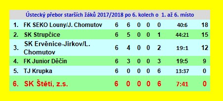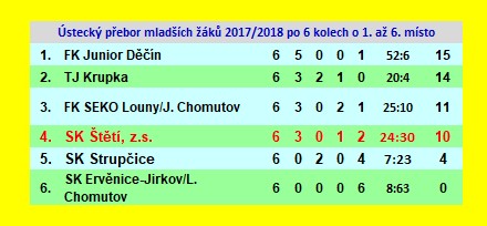 | 7. | FK Schoeller Křešice,.. | 7 | 59:146 | 4 |