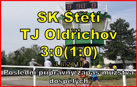 Nový fotbalový ročník se nezadržitelně blíží. Už jen týden a v sobotu 11. 8. 2018 nás doma čeká nováček soutěže ASK Lovosice. Poslední přípravné vystoupení nás čekalo právě doma a proti nám stál tým, který v loňském ročníku dlouho usiloval v I. A třídě o postup mezi krajskou elitu, ale o ten jeden stupínek mu to uteklo, když skončil n a2. místě právě za Lovosicemi. Zápas se hrál, jak už to v to tuto dobu bývá zvykem za velkého vedra a hráči to jednoduché neměli. Zápas jsme začali v pohodě a hned od úvodu jsme si získali herní převahu. Ve 4. minutě byl faulován Křtěn, ale z volného přímého kopu trefil Vokoun jen prvního obránce. Převahu jsme si sice vypracovali, ale na střelu mezi 3 tyče jsme stále čekali. Zkoušel to Slavíček, ale byl v tak hodně ostrém úhlu, že branku v 8. minutě netrefil. Hosté, kteří přijeli jen v 11, brzy vytušili, že jejich šance uspět bude založena na rychlých protiútocích. První vážnější tah na naši svatyni se urodil v 19. minutě, ale zakončen byl nepřesnou střelou na vedlejší hřiště s umělým povrchem. Ve 21. minutě jsme si vypracovali do té doby největší příležitost. Gól měl na hlavě Vokoun, ale míč po centru Fausta zavítal mimo 3 tyče. Zápas dostal jasnou šablonu. Hosté bránili a my dobývali jejich pokutové území. Zkoušeli jsme to hlavně středem hřiště, ale zde bylo plno a k úspěchu nevedlo. Pak stačila jen nepřesná přihrávka a Oldřichov se vydal neohroženě směrem na naši branku, tak jako ve 28. minutě, kdy moc nechybělo, aby hráč zabíhající za obranu poslal hosty do vedení. S citem z volného přímého kopu poslal balón na hlavu Ransdorfa Vokoun, ale chyběl ten pověstný kousíček, aby to skončilo naší vedoucí brankou. Ve 39. minutě vystartoval soupeř opět ve velkém počtu na naši polovinu. Skončilo to pokusem těsně vedle pravé tyče. Co nám do této doby chybělo, byla střelba. Ve 42. minutě už to ale už neplatilo. Jiří Vokoun z takových 20 dobrých metrů vypálil a brankář, ať se natahoval, jak jen to šlo, tak byl krátký. Na přestávku za stavu 1:0 se šlo o něco veseleji. Druhý poločas začal faulem na Fausta blízko hranice poutového území. Míč si vzal Vokoun a parádně ho poslal přes zeď, ale bohužel se míč odrazil od břevna zpět do pole. Dožadoval se sice přeměření branky, zda je přesně 2,77 metru, ale u rozhodčího neuspěl. Hezkou a překvapivou šajtlí se uvedl Mencl, ale ani v tomto případě míč za zády gólmana neskončil. Gólu z kopaček našeho mužstva jsme se dočkali v 61. minutě. Marek Faust zvítězil ve sprintu nad pravou stranou hostující obrany a ještě stačil naservírovat Jakubovi Slavíčkovi desert na 2:0. Tlak na hostující branku jsme udržovali v dalších minutách, ale na branku na 3:0 se čekalo až do 81. minuty. Chuťovku od Slavíčka dostal střídající Feko a ten si ji vychutnal střelou k tyči na 3:0. Samotný Robert Feko byl pak v následujících několika minutách opět tou hlavní postavou utkání. Věřte, nevěřte, tak se 3x v krátké době ocitl ve výborném střeleckém postavení, ale místo zakončení, vždy tak dlouho váhal, až bylo po šanci. Pak už tu byl konec a hráči se mohli jít v tomto úmorném vedru osprchovat.
