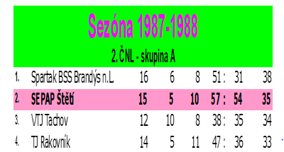 | 2. | Sepap Štětí | 20 | 80:47 | 40 |