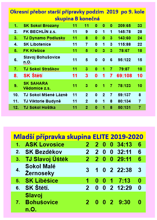 | 10. | SK Štětí, z.s. | 22 | 50:139 | 15 |