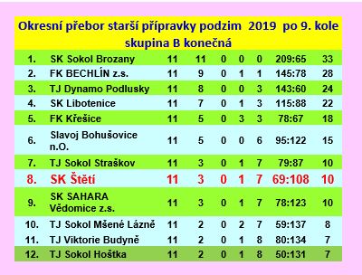 | 9. | SK Štětí, z.s. | 17 | 27:31 | 23 |