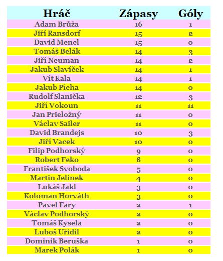 | 14. | FK Olympie Březová, z.. | 17 | 24:46 | 15 |