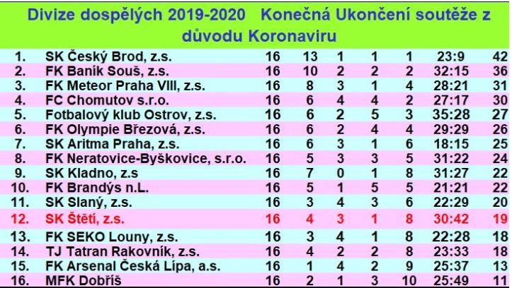 Tím bylo rozhodnuto. V ročníku 2019-20 jsme skončili s 19 body na 12. místě se skórem 30:42 a i v roce 2020/2021 si zahrajeme divizní soutěž.