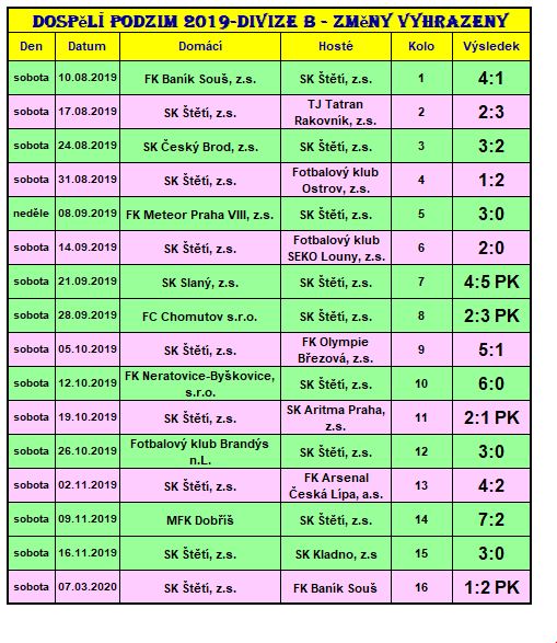V divizi jsme ostudu neudělali. Uplynulý ročník se nám, až na některé zápasy v Brandýse n.L., Neratovicích a Dobříši, které se nám výrazně nepovedly, se nám dařilo a to především v domácích zápasech. Je škoda, že jsme to k té záchraně nemohli dotáhnout normální cestou. Nicméně jsme rádi, že se divize bude ve Štětí kopat i v příštím ročníku. Máme nové zkušenosti, ten půl rok nám ukázal, že můžeme hrát vyrovnané partie se všemi soupeři.