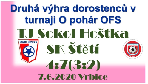 Na hřišti v Hoštce probíhá v současné době generální rekonstrukce a tak vítěz okresního přeboru dorostu v loňském ročníku hraje své domácí zápasy ve Vrbici. Stejně tomu bylo i ve 2. kole turnaje O pohár OFS. Soupeřem domácích byl právě náš dorostenecký celek, který před týdnem doma přehrál Straškov. Jak silný celek nás dnes čekal, jsme si vyzkoušeli hned v 5. minutě. Poznání to bylo smutné, protože po pěkné střele Petra Kadlece jsme prohrávali 1:0. Soupeř se naštěstí ještě pohyboval na vlně oslav a hned o minutu později za jejich obranu zaběhl Ladislav Kuča a pěkným přehozením brankáře rychle srovnal na 1:1. Hoštka hrála v úvodní čtvrthodince s mnohem větší chutí než naše mužstvo a velmi aktivně napadala naše obránce, kteří nevěděli kam dříve skočit. Postupně se ale hra vyrovnávala a v 15. minutě jsme dokonce vstřelili gól. Asistent rozhodčího ale správně odpískal postavení mimo hru. Do vedení jsme se ale o 2 minuty později přeci jenom dostali. Zahrávali jsme roh. Míč létal od čerta k ďáblu, až přistál na noze Lukáše Šrotýře, který mohl po pěkném zakončení na 2:1 oslavovat branku svým typickým způsobem. Hořeli však zadní řady našeho celku. Místo odkopu míče do bezpečí jsme se často zbytečně snažili něco vymýšlet a končilo to jeho ztrátou jako třeba při šanci Hoštky v 18. minutě. Gólovku jsme ještě přežili, ale ve 25. minutě už to neplatilo. Petr Kadlec trestal a vyrovnal na 2:2. Hrubku v obraně jsme si zopakovali ve 37. minutě Radek Polák dokonal obrat v utkání ve prospěch Hoštky, která se dostala do vedení 3:2. Tak skončil i první poločas v jehož závěru měl soupeř ještě jednu šanci a na druhé straně jsme se zase dožadovali pokutového kopu po kontaktu obránce s Oldřichem Malechou. Hned po jednom z prvních útoků ve 2. části zahrávala Hoštka rohový kop a byla z toho střela, kterou Vojtěch Budka v naší brance, věkem ještě žák, dokázal vyrazit na roh. V 53. minutě přistál centr na hlavě Jakuba Daniluka a chybělo 50 centimetrů, aby bylo vyrovnáno. Obloha nad naším mužstvem se ještě více zatáhla v 55. minutě. Jedna z mnoha chyb ve středu hřiště vyústila v branku na 4:2 pro Hoštku. Po tomto gólu už jen málokdo doufal, že by se mohl vývoj utkání otočit v náš prospěch. Malá naděje vykvetla v 60. minutě. Založili jsme rychlý útok a byl z toho pohotová střela Oldřicha Malechy levačkou na 3:4, na kterou brankář nedosáhl. V 65. minutě byl ve vápně Hoštky nedovoleně poslán k zemi brankářem Lukášem Smejkalem, mimochodem tento borec řádí v Hoštce jako nejlepší střelec starších žáků, Oldřich Malecha a rozhodčí David Dobiáš nařídil správně pokutový kop. Jakub Pilař zahrál svým příznivcům na nervy, ale penaltu přeci jenom proměnil propálením gólmana. 4:4 a všechno bylo zase jinak. Mužstvo z Hoštky začalo uvadat jak květina v pohádce Pyšná princezna a po centru Lukáše Šrotýře v 67. minutě dezorientovaný Roman Šíma poslal hlavou balón za záda vlastního brankáře. Tím jsme se ujali vedení 5:4. V rozmezí 7 minut jsme vstřelili 3 branky. Dobrá nálada celku Štětí pokračovala v 70. minutě. Oldřich Malecha si šikovně zaběhl za obranu a pak už se nemýlil, když krásně podstřelil brankáře na 6:4. V 78. minutě jsme soupeři nabídli ještě jednu gólovku, ale míč skončil vedle tyče. Závěr utkání se pak už odehrával v naší režii. Velkou šanci 10 minut před koncem zahodil Oldřich Malecha, kterého 5 minut před koncem zastoupil Aleš Rubín, když s přehledem uklidil míč do branky na konečných 7:4.