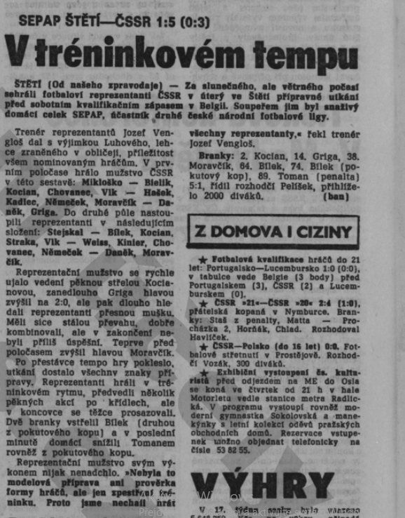 Sepap Štětí-ČSSR 1:5  25.4.1989