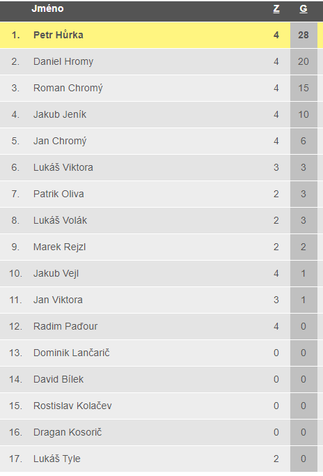 | 1. | Sulejovice/Vchynice SD | 28 | 125:20 | 73 |