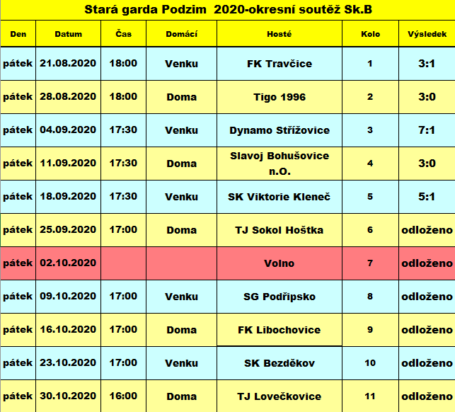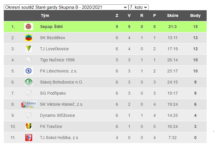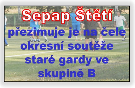 Dvě změny oproti minulému ročníku 2019/2020, který se z důvodu koronaviru nedohrál, přinesly fotbalové soutěže staré gardy v okrese Litoměřice. Byla zrušena dvou stupňovitost soutěží. Okresní přebor zmizel a zůstaly 2 skupiny okresní soutěže. Sepap Štětí byl zařazen do skupiny B. Tou druhou změnou je, že do soutěže se již nepřihlásil neporazitelný tým TJ Žitenice. Neporazitelný výběr složený z bývalých ligových hráčů a reprezentantů, který pokud se nemýlím, od roku 2012 vládne soutěžím starých gard na Litoměřicku. Mužstvo se vydalo vlastní cestou a organizuje si zápasy individuálně. Jeden z nich se měl odehrát i 2. 10. 2020 ve Štětí proti našemu výběru staré gardy Sepap, ale nakonec byl zrušen. Důvodem byl koronavir, který by omezil počet diváků, kteří by se tohoto atraktivního zápasů mohli účastnit, a tak jsme se dohodli na náhradním termínu 7. 5. 2021 od 17:00. Vraťme se ale na začátek soutěže. Stará garda Sepap zahajovala jako vůbec první mužstvo SK Štětí svoji mistrovskou soutěž v 11 členné skupině okresního přeboru. Už 21. 8. 2020 zajížděla do Travčic. V poločase vedla 1:0 po brance brankového umělce Jana Fibicha. Domácí sice brzo po změně stran vyrovnali, ale pak se ujal režie zápasu Tomáš Burda a spolu se spoluhráči řídil vítězství Sepapu 3:1. V dalším kole 28. 8. 2020 nás doma čekal, již tradiční soupeř, TIGO 1996. Právě tento tým spolu s naším typoval před začátkem soutěže manager Sepapu Milan Šťastný jako jedny z hlavních favoritů letošního ročníku. Zápas jsme vyhráli 3:0. Vypadá to, že to byla celkem jasná záležitost, ale kdo zápas viděl, tak musel uznat, že to tak jednoduché vůbec nebylo. Soupeř zahodil i ty největší šance a toho jsme dokázali náležitě využít. Vedení zajistila nová tvář v našem týmu Jakub Červinka a po změně stran přidal ještě 2 kousky Miloš Vála. Když jsme si pak ve 3. kole 4. 9. 2020 pěkně zastříleli ve Střížovicích a vyhráli 7:1, tak jsme se ocitli na čele tabulky s 9 body. Stejně jich měl i SK Bezděkov, ale na naší straně bylo lepší skóre. Druhý domácí jsem byl na programu 11. 9. 2020. Před zahájením však zavolal Slavoj Bohušovice n.O., že jich je málo a do Štětí nepřijede. Kontumace 3:0 a lehce získané body. Raději by jsme si ale zahráli než si body připsat papírově. Zahráli jsme si o týden později 18. 9. 2020 s Viktorií Kleneč na jejím hřišti. Střelecky se v tomto utkání představil autor 3 branek Miloš Vála. Překvapení se nekonalo. Slavili jsme výhru 5:1. V dalším, 6. kole mělo být na programu derby. Do Štětí se 25. 9. 2020 chystala Hoštka, ale nakonec požádala o přeložení až na jaro. Vyhověli jsme, a protože v dalším kole 2. 10. 2020 měla stará garda volný los a 8. kolo proti Podřipsku 9. 10. 2020 už se kvůli koronaviru nehrálo, tak to znamenalo, že zápasová cesta podzimem skončila v Klenči. Na konečnou tabulku podzimem se dívá velmi hezky. 1. místo s plným bodovým ziskem 15 bodů. 2. místo se 13 body patří SK Bezděkovu. Má však o zápas více než naše mužstvo. Jak, bude vypadat jarní část soutěže se zatím ještě neví, ale věříme, že se bývalé fotbalové hvězdy ze Štětí a jeho okolí na fotbalové trávníky vrátí velmi brzo.
