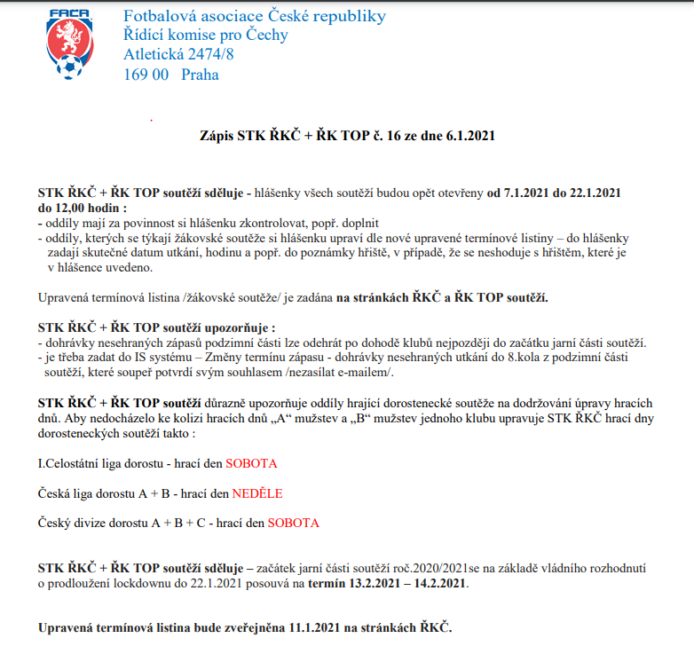 Pokračování divizní soutěže bylo odloženo o 14 dní