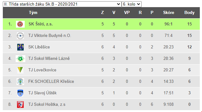 | 5. | Pokratice/Bohušovice SD | 22 | 127:81 | 41 |