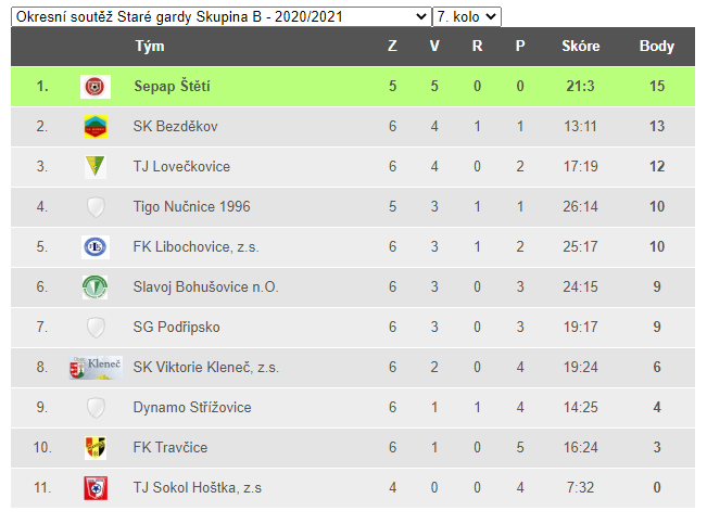 | 6. | SK Štětí, z.s. | 7 | 106:105 | 6 |