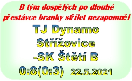 Jako první si po kovidovém uvolnění vzalo slovo B mužstvo dospělých, které se si dalo dostaveníčko ve Střížovicích s domácím Dynamem a v jedné z posledních bašt fotbalu na Texase si to rozdalo v přátelském utkání. Lepší úvod mělo naše mužstvo. Už ve 3. minutě se k finální přihrávce prokličkoval Daniel Lisec a pro Josefa Horáčka už to nebyla žádná velká práce, aby dopravil míč za záda brankáře na 1:0. Domácí se do tempa dostávali pomaleji, ale i tak se připravili několik nadějných šancí, ale bohužel pro ně, byla koncovka nepřesná. Domácí promarněné šance mohly mrzet o to více, když se ve 26. minutě vydal k samostatné akci po levé straně Daniel Lisec a šikovnou střelou pod tělem brankáře zvýšil vedení na 2:0. Za dalších 5 minut už to bylo 3:0. Prosadit se dokázal jeden ze 4 dorostenců v sestavě B mužstva Ladislav Kuča a naděje Střížovic na úspěch se v tomto utkání začala vytrácet. V 39. minutě krásně hlavičkoval Ladislav Kuča, ale stejně tak bravurně zasahoval brankář domácích Karel Pabiška, který určitě rád vzpomíná na své působení před 6 lety ve Štětí. Hned po změně stran zahrával roh Ladislav Kuča, před brankou našel hlavu úplně volného Josefa Horáčka a mohli jsme slavit gól na 4:0. Do 2. poločasu už nenastoupily 2 opory našeho týmu Tomáš Danč a Lukáš Brzek. Nahradil je však navrátilec do týmu Luboš Uřidil. V rozmezí 4 minut, ve 49. a 53. 2x skóroval. Nejprve střelou mezi nohy brankáře a ke druhému úspěchu mu pomohla chybná rozehrávka domácích. Diváci, kteří dobře počítali, tak došli k průběžnému výsledku 6:0. Další branka padla v 72. minutě. Brankář Střížovic míč po tvrdé střele jen vyrazil před sebe a do prázdné branky dorazil Messi. Ten vlastně ne, ten chyběl, byl to Kamil Střihavka 7:0. Když už se zdálo, že to bude i výsledek konečný, tak si pro 2 branku v utkání došel ještě Daniel Lisec a po několika dorážkách byl tím posledním, kdo upravil na konečných 8:0.