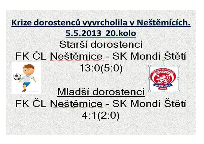 Starší dorostenci vysoko prohráli v Neštěmících-5.5.2013