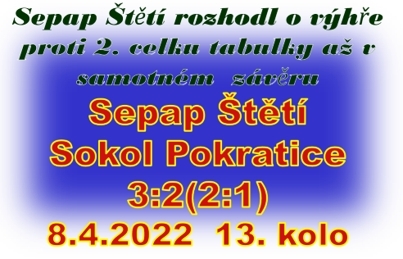 | 5. | Pokratice/Bohušovice SD | 22 | 127:81 | 41 |
