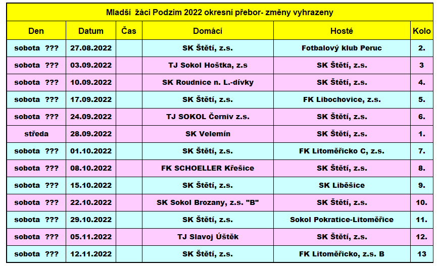 | 10. | SK Štětí, z.s. | 22 | 50:139 | 15 |
