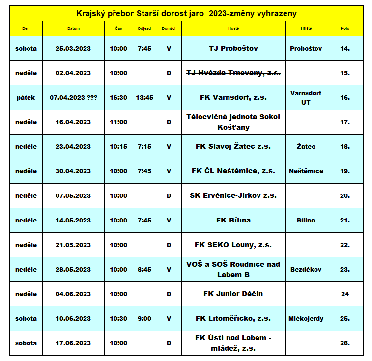 | 1. | FK Travčice, z.s. | 22 | 162:36 | 56 |