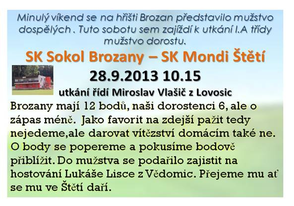 Odjezd dorostenců do Brozan v sobotu v 8:30