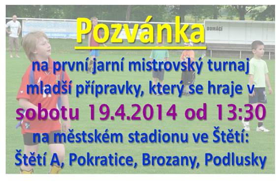 Pozvánka na turnaj mladší přípravky.  Hraje se ve Štětí od 13:30.