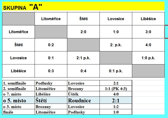 | 6. | SK Štětí, z.s. | 7 | 106:105 | 6 |