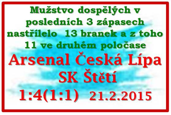 Nástup do utkání lépe vyšel hostujícímu kolektivu a v 10. minutě šel také do vedení 1:0. Tichý dostal v šestnáctce až příliš mnoho prostoru a i když střela z jeho kopačky přímo do sítě nedorazila, tak se o to postaral dobíhající Blažek. Domácí jedenáctka zahrozila hned po rozehrávce ze středového kruhu, ale v dobrém palebném postavení se do zakončení nedostala. Prvních 15 minut patřilo Štětí a zdálo se, že našlo ten správný recept jak se úspěšně vypořádat s mladým kolektivem soupeře, jehož jedním z trenérů je i Stanislav Kouřil, kterého si určitě pamatují ti správní štětští fanoušci, když v 80. letech válel v dresu Sepapu Štětí ve 3. lize zvané Česká fotbalová liga. Šimral ještě hezky prošel obranou České Lípy a příjemci nahrávky chybělo k zakončení pár centimetrů, ale pak hosté kombinovali spíše na vlastní polovině hřiště, kde je domácí úspěšně atakovali a žádnou akci natož střelu na branku si nevypracovali. Ve 26. minutě v době, kdy se obrana Štětí dožadovala postavení mimo hry, které ale nebylo, se před branku dostal lehkonohý útočník domácích Burian a Doležalovi nedal žádnou šanci. A ve 34. minutě už to mohlo být dokonce 2:1 pro Českou Lípu. Chyběla však větší zkušenost v koncovce a brankář Štětí si připsal do kolonky úspěšných zákroků čárku. Ještě před změnou stran mohl skórovat hlavou Tichý, ale balón jen tak lehce škrtnul a jeden z obránců ho stačil ještě tečovat na roh. Na opačné straně hřiště ve 42. Minutě to zkusili domácí z volného přímého kopu, ale chyběla větší přesnost. Do druhého poločasu nasadili hosté do hry 3 nové tváře a hned za 3 minuty se do míče levou nohou opřel Tichý, ale přisvítit za brankou nemusel, protože svítilo sluníčko. Pak si vzalo slovo domácí mužstva a nebezpečnou střelu srážel na roh brankář. Pěkným průnikem po pravé straně se v 55. minutě představila jedna z nových tváří v dresu Štětí Štěpán Kotrba, ale jeho nabídku hlavou Malák do branky neumístil. Stejný hráč mohl skórovat o pár chvil později, ale koncovku až příliš uspěchal a vyšel také naprázdno. Jeden z mála rychlých protiútoků Štětí založil Stejskal a na milimetr přesnou přihrávkou našel před brankou aktivního Beláka, který hosty podruhé do vedení. 2:1. Na chlup stejnou souhry předvedlo Štětí za 4 minuty, ale tentokrát v koncovce chyběl Tichému krok. Hezky z volného přímého kopu střílel Tůma v 73. minutě, ale stejně tak bravurně zasahoval i brankář domácích. V poslední čtvrtině zápasu obranné činnosti ani jedno z mužstev velkou pozornost nevěnovalo. Blízko vyrovnání byli domácí v 75. minutě, ale Chadtraba , který v první polovině stál v brance domácích, si střeleckou pohodu do zápasu nepřinesl a míč se mezi 3 tyče nevešel. 10 minut před koncem se chtěl do soutěže o gól měsíce přihlásit Blažek, když téměř z poloviny hřiště zkoušel přehodit brankáře domácích, ale minul. Druhým útočníkem byl v těchto okamžicích v sestavě Štětí Stejskal a byl to také on, kdo se stal hráčem posledních 8 minut. V 82. minutě ještě přesně nezamířil, ale vynahradil si to v minutě 86., kdy pod padajícím brankářem upravil na 3:1. Nebylo to ale všechno, protože o minutu později se ten samý hráč objevil u zadní tyče a stanovil konečnou podobu výsledku 4:1 pro Štětí.