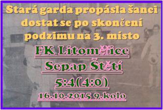 | 3. | FK Litoměřice B | 22 | 133:28 | 50 |